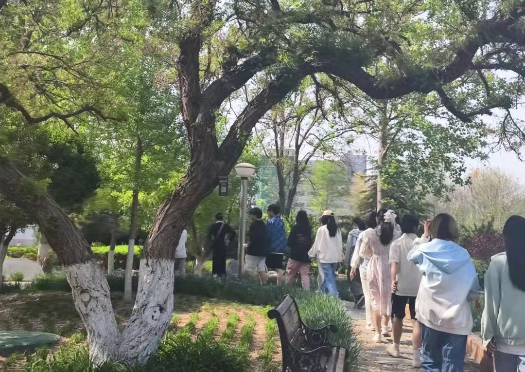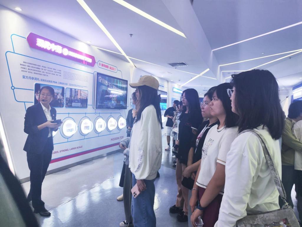 接着,同学们来到了“百草园”与“明星大道”。“明星大道”布满了天士力创业者的足迹,印证着天士力创建百年企业、百年品牌、百年育人的坚实旅程。“百草园”里生机盎然,充满着中草药特有的香气。在这里同学们了解到了丹参、芍药等数十种中药材的特性与药用价值。
