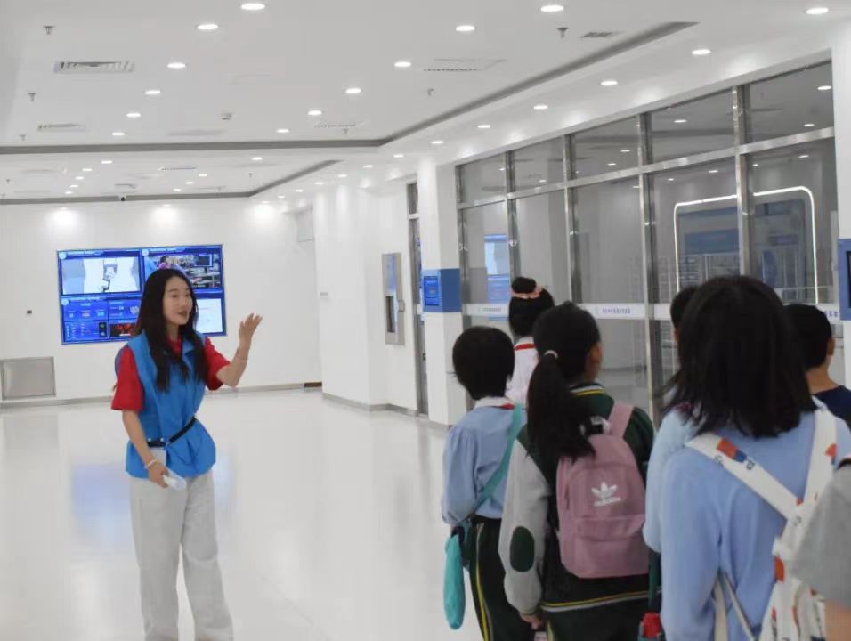 研学第二站,同学们来到了现代中医药海河实验室,开始了一场现代中医药的研学之旅。现代中医药海河实验室展现了传统智慧与现代科技的完美交融,通过现场讲解员王甜同学的讲解,以及展示柜上的仪器和药品,阐述了海河一号和海河二号等智能筛选平台的工作流程,用科普的语言讲述了实验室按照“四个面向”的要求,如何聚焦现代中药研发、新型制剂研究、先进制造、临床评价等方向,让孩子们了解到传统的中草药如何通过现代的技术完成了蜕变,如何让中医药开出“现代花”,展现了现代中医药的创新发展。本站研学让同学们深刻感受到中药的数字化之旅,近距离感受到现代中医药事业发展取得的最新成就,沉浸式领略中医药的科技之美、创新之美。