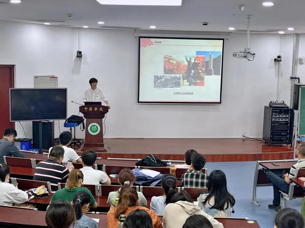 2021年5月14日,中药制药工程学院研学党支部吕博海同志为学院全体师生党员讲党课暨“长征精神与当代启示”,学习以毛泽东同志为代表的中国共产党人和红军在第五次反“围剿”失败后,在一条历尽艰辛的求生之路上,培育的伟大的长征精神。