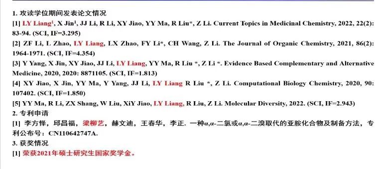 梁柳艺学姐发表论文及获奖情况