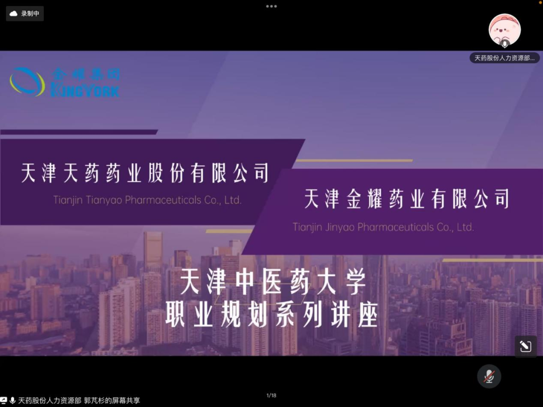 随后,天津天药药业股份有限公司招聘专员郭芃杉老师为同学和家长们介绍了目前的就业形势、企业招聘流程、薪资待遇、员工成长晋升机制等,详细讲解了企业的“双通道”职业发展路径、技术路线、管理路线和“分层次”培育体系。她还为同学们分享了一些关于制作个人求职简历的经验,建议大家清晰认知自我特点和行业发展,不要盲目选择,保持良好的就业心态。