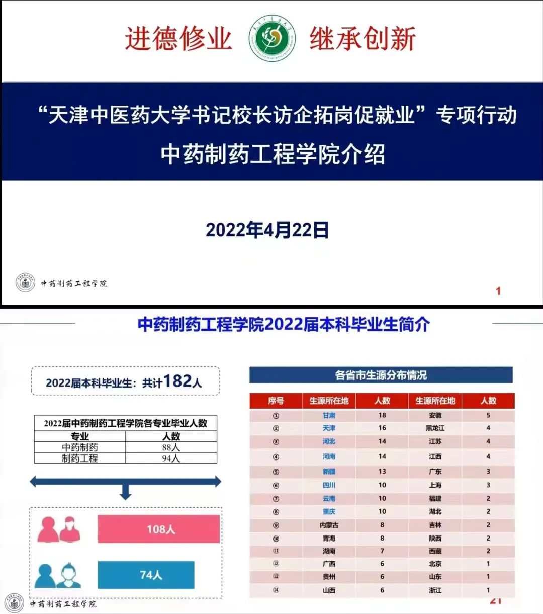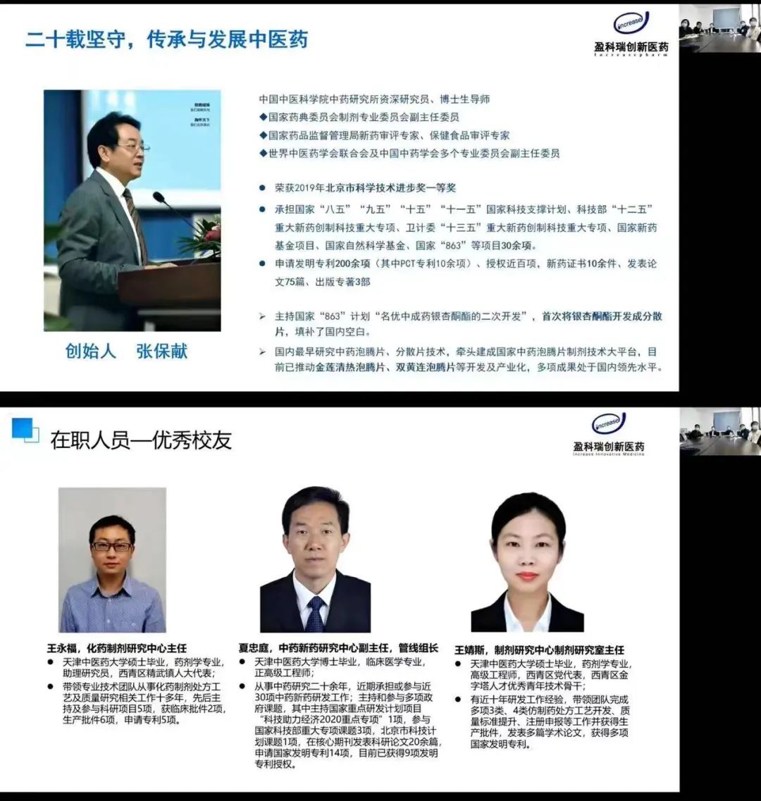 4月22日下午,天津中医药大学中药制药工程学院云端连线盈科瑞(天津)创新医药研究有限公司,举行首场“访企拓岗促就业”校企人才供需座谈交流会,深入了解用人单位对毕业生的知识、能力、素质要求,携手企业谋划拓展就业渠道、就业岗位和机会,促进毕业生更加充分更高质量就业。天津中医药大学党委副书记李鑫、中药制药工程学院院长李正、院党委书记张瀛予、校招生就业处副处长范筠娜、毕业班辅导员吕紫薇等出席本次座谈会。会议由中药制药工程学院党委书记张瀛予主持。